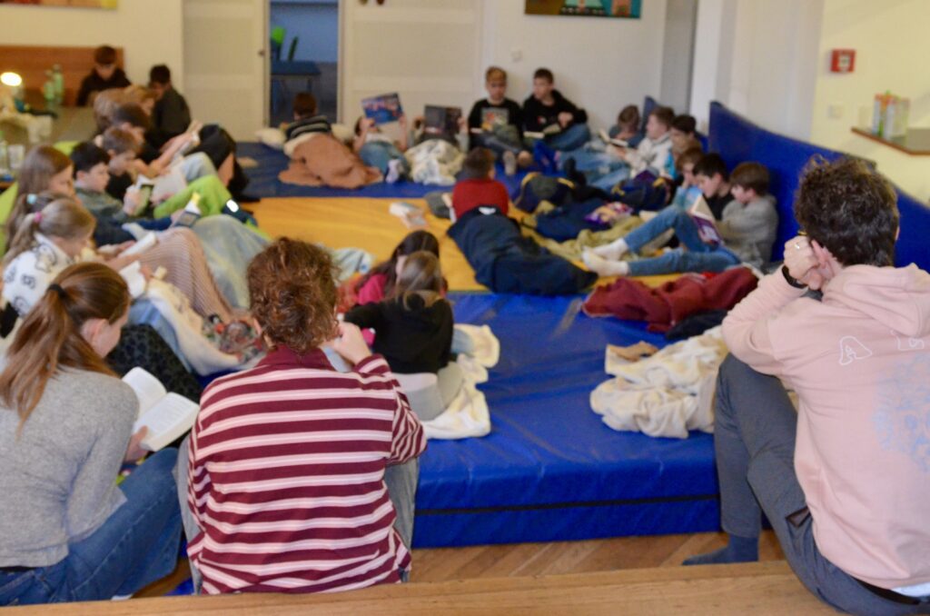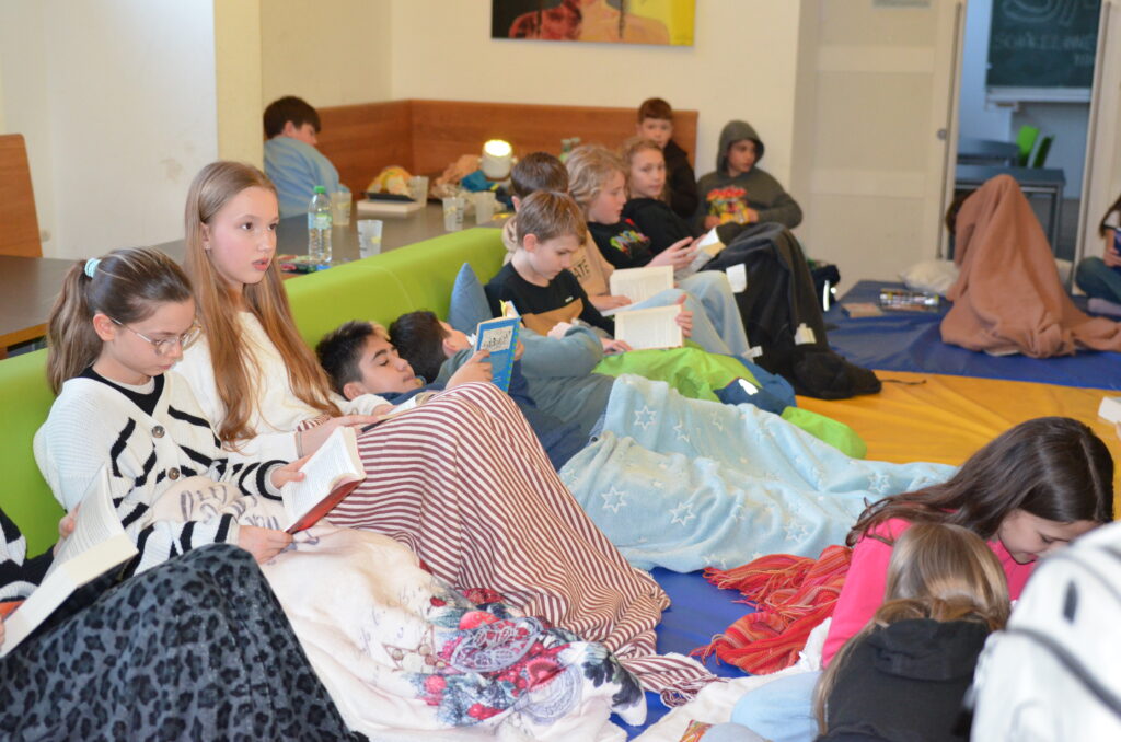 Der Leseabend für die Klassen 5-7 am AEG am 27.02.2026 war ein schönes Erlebnis für alle, die gerne lesen. In gemütlicher Atmosphäre wurde zum ersten Mal gemeinsam gelesen. „Wednesday“, „Gregs Tagebuch“ oder „Percy Jackson“ – jeder hatte sein aktuelles Lieblingsbuch dabei. Zwischen den Leserunden gab es Zeit zum Austauschen, Lachen und natürlich für Snacks. Die Lesenacht hat gezeigt, wie viel Spaß Lesen machen kann! Ein großer Dank geht an die SMV, die den Abend organisiert hat.